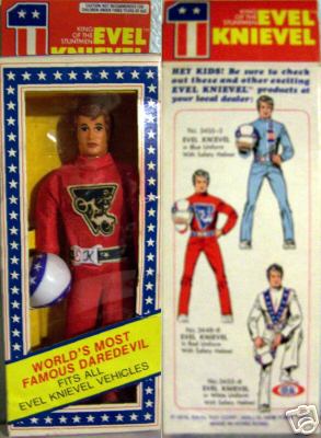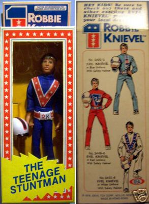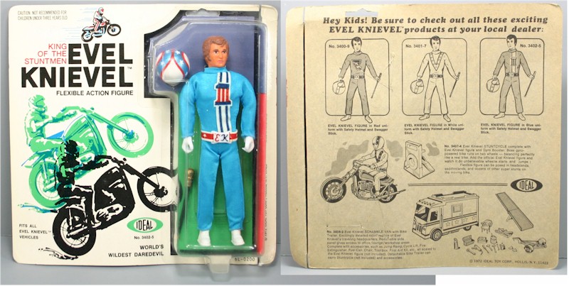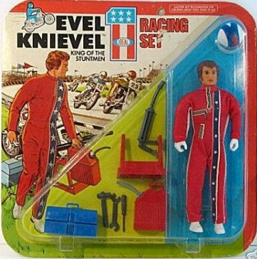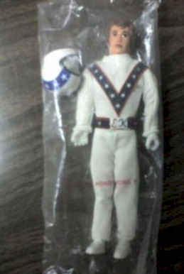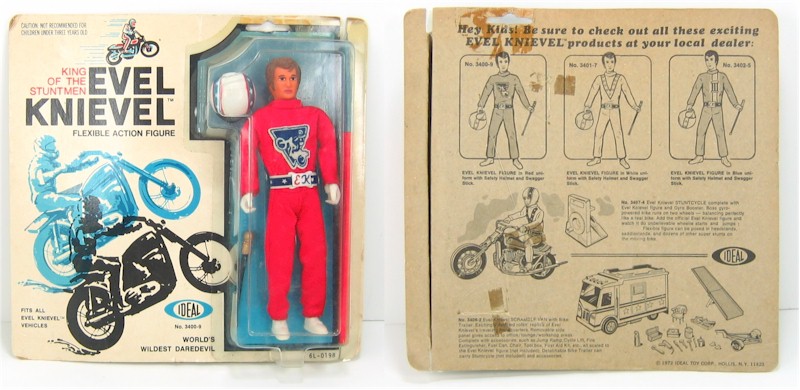 Once the popularity of the original Evel line had been established, Ideal unleashed the Robbie Knievel action figure on us. At just a tad shorter and thinner than the King, Robbie is of the same design and fairly hard to find in good condition.