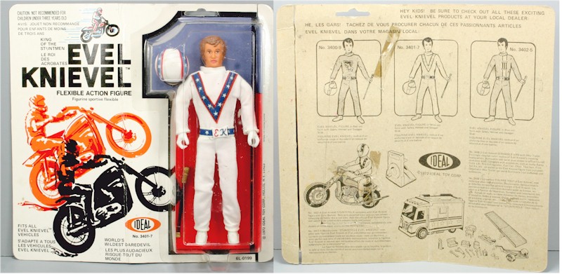 Ideal also released an extremely (and I mean extremely) rare and limited issue (talking less than 100 sold) of five outfits for Evel Knievel to dress up in. Available through mail order they came packaged with a white outfit figure. A really, really great find!
